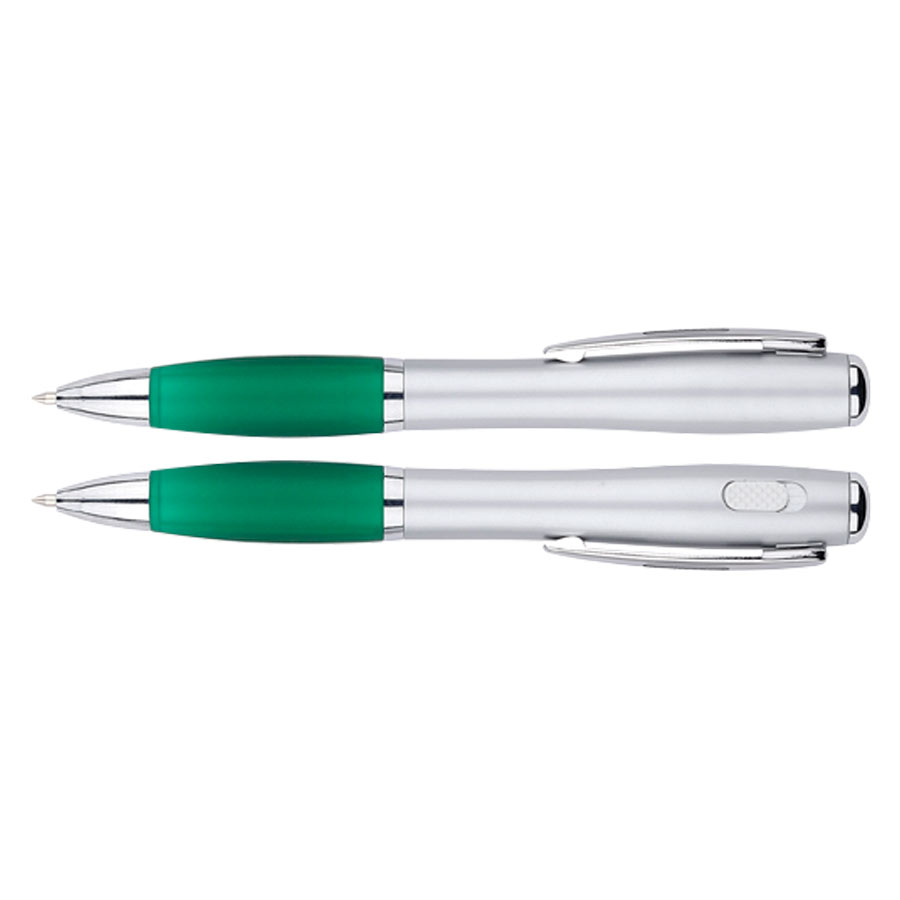 Bolígrafo plástico con linterna LED. Escritura Azul.