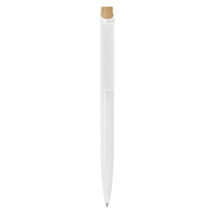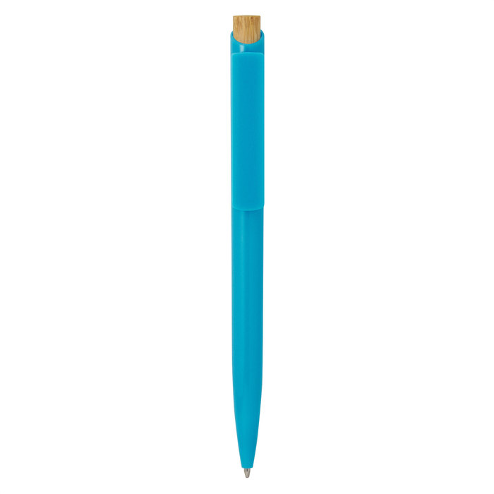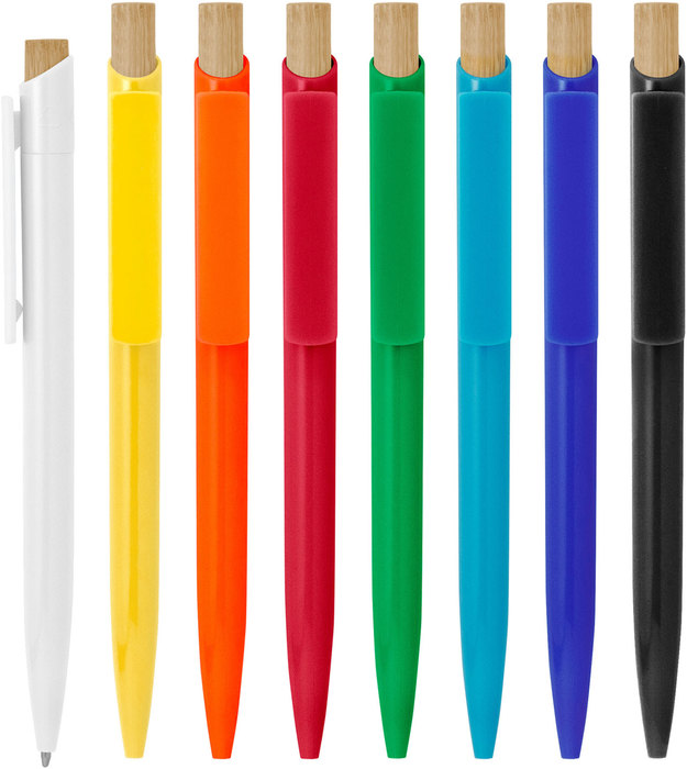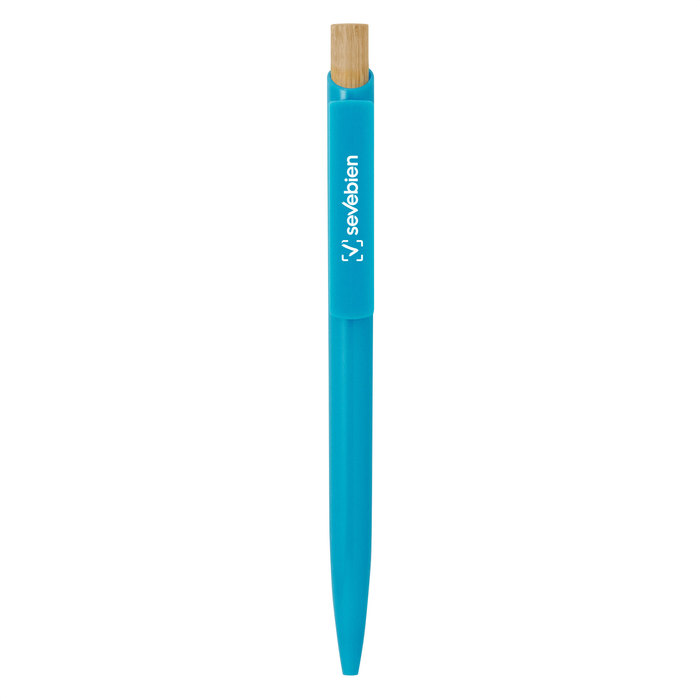 Combina estilo y conciencia ecológica.Bolígrafo retráctil. Cuerpo de diferentes colores. Pulsador de bambú. Clip del mismo color del cuerpo.