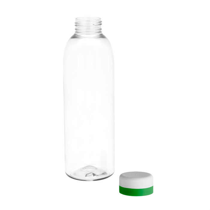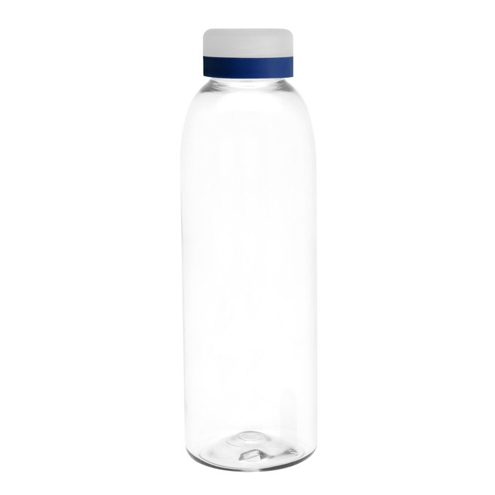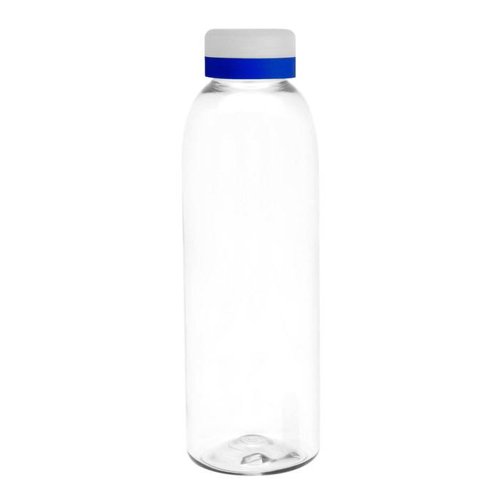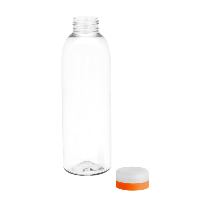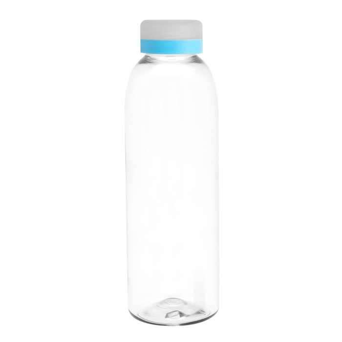 Diseño práctico para un uso diario.Botella de plástico transparente con tapa a rosca esmerilada con anillo de silicona de diferentes colores.Medidas: Ø 7 x 23 cm.