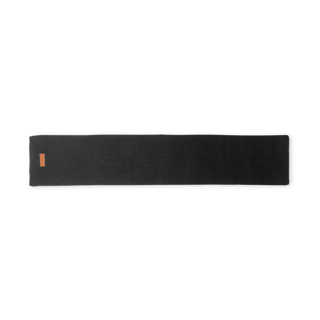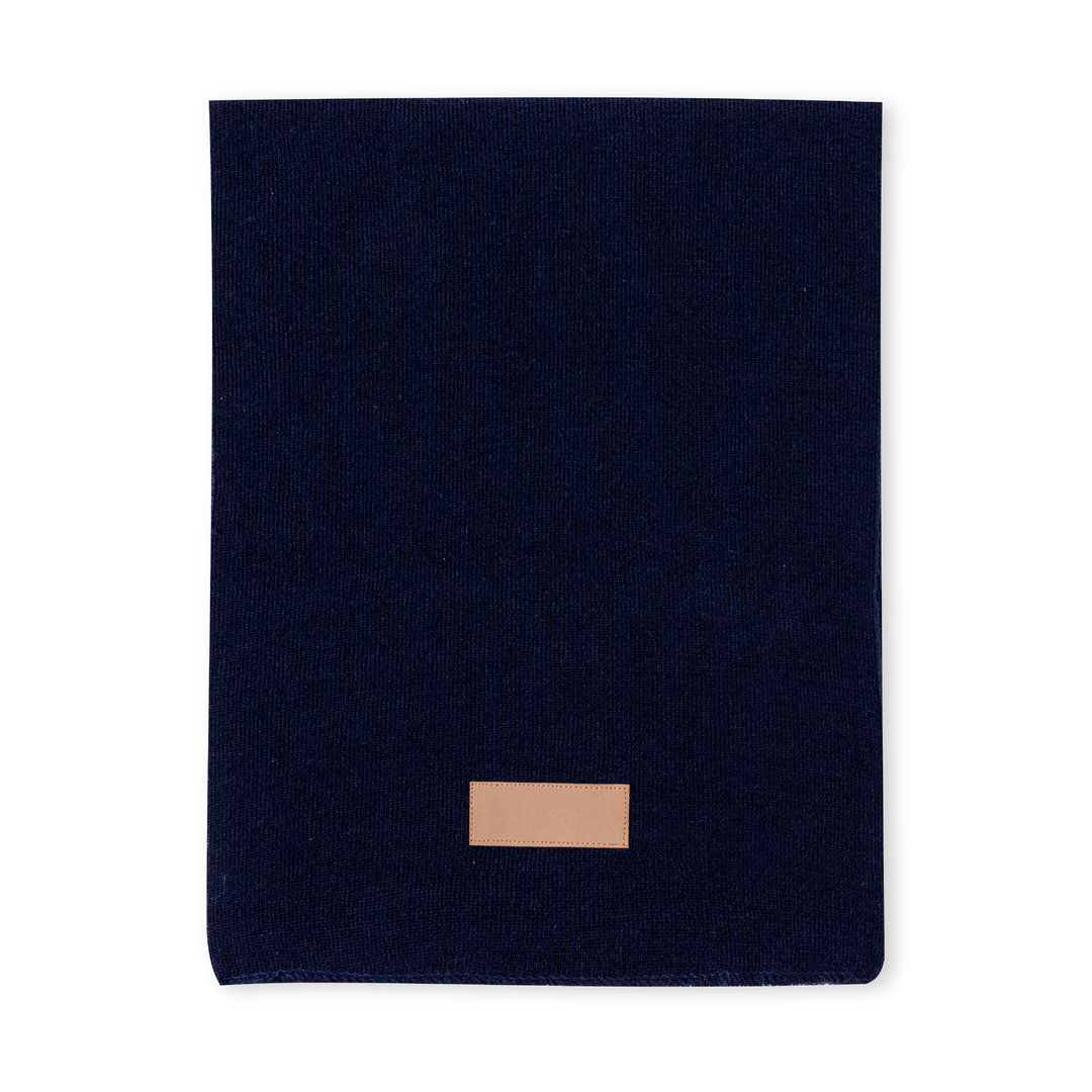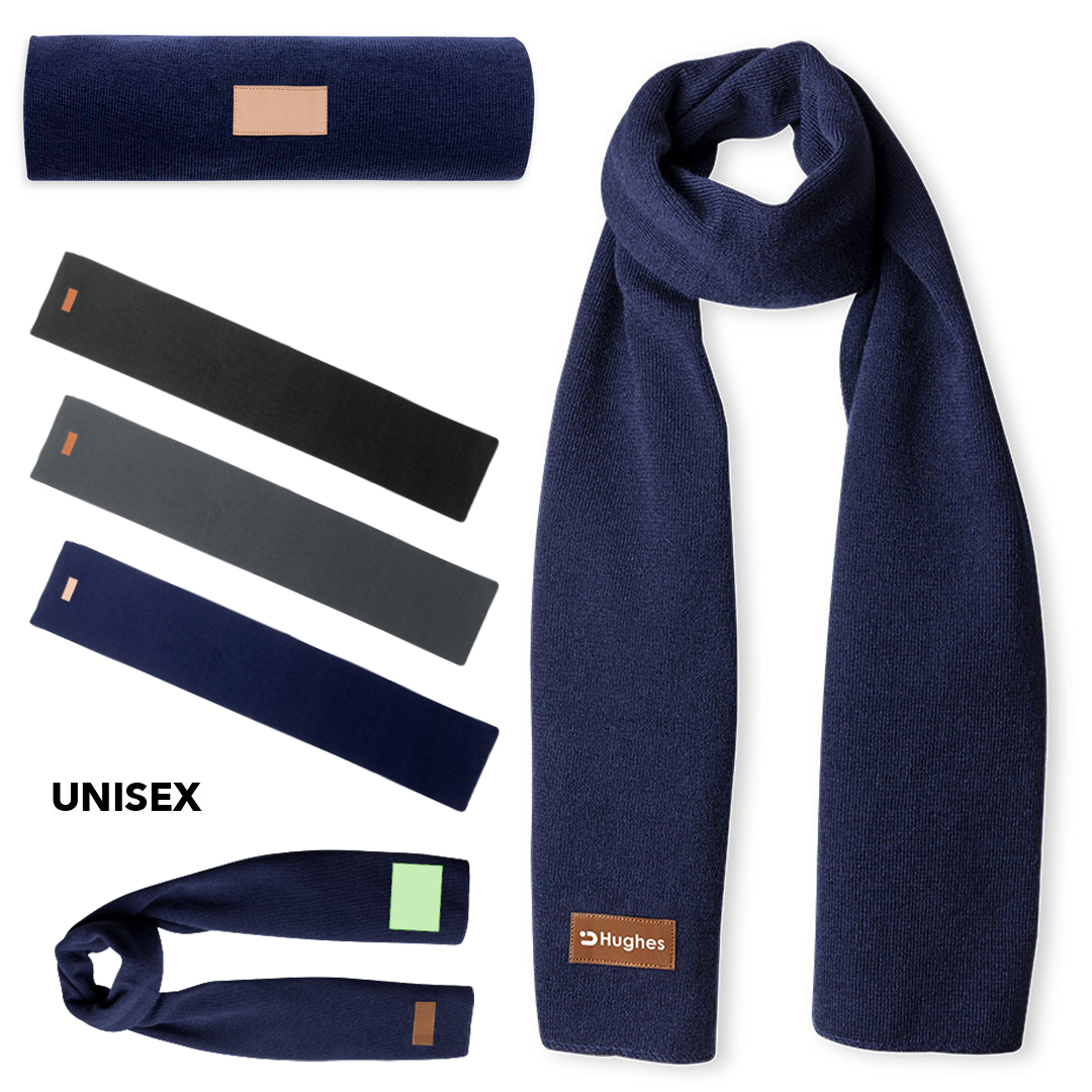 Bufanda unisex fabricada en material acrílico elástico. Con parche en polipiel cosido para marcaje y disponible en variada gama de colores.