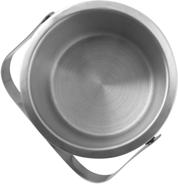 Ø 14 x 14 cm. Capacidad 1100 ml. Acero inoxidable. Interior en acero 304 y exterior en acero 201. Hielera de mesa con tapa. Pinza para hielo de acero inoxidable, encastrable en la misma tapa. Asa de acero inoxidable para transportar. Presentación en caja de regalo kraft.