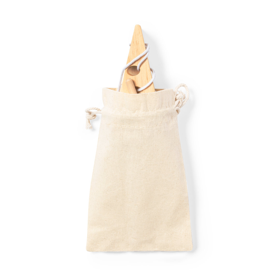 Juego de habilidad fabricado en resistente madera de pino natural y en bolsa de transporte 100% algodón con cordones de cierre. Funda Algodón