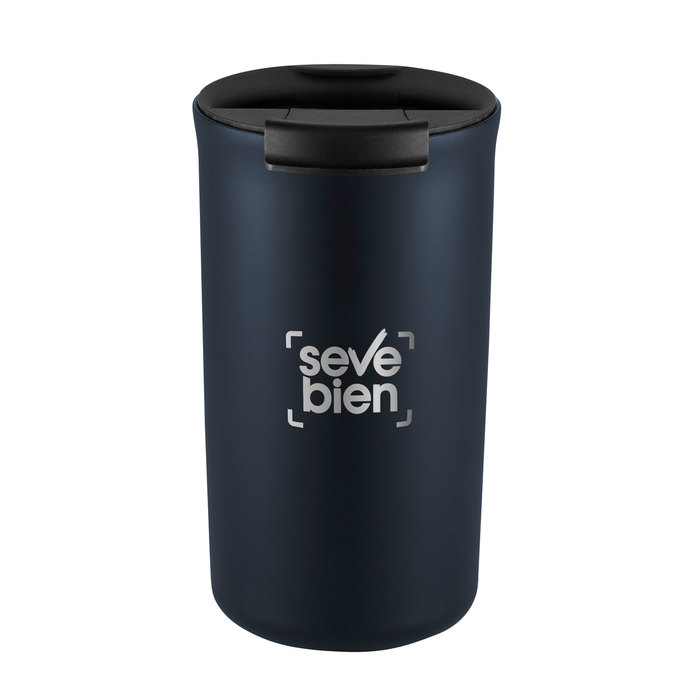 Mug térmico doble pared sellado al vacio. Aislamiento térmico. Tecnología vacuum. Interior en acero 304 y exterior en acero 201 con acabado mate. Tapa de polipropileno y anillo de silicona antivuelco. Base antideslizante con almohadilla de EVA color negro. Mantiene hasta 6 hs la temperatura de las bebidas calientes y hasta 10 hs la de las bebidas frías.