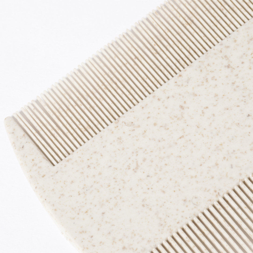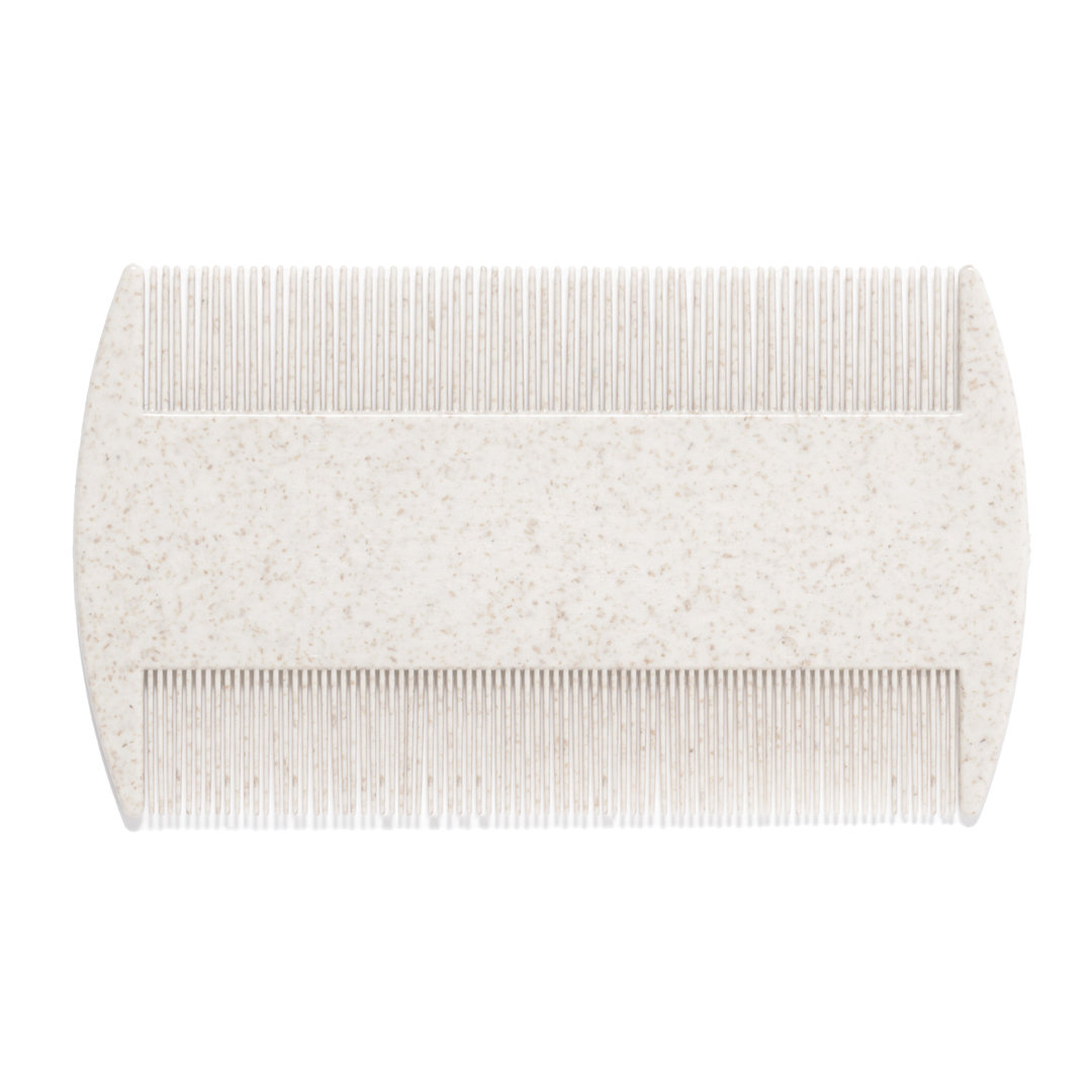 Peine para mascotas fabricado en caña de trigo, con dos opciones de cepillado para adaptarse a distintas mascotas. La caña de trigo fomenta la utilización de materias primas naturales, reduciendo así las emisiones contaminantes.